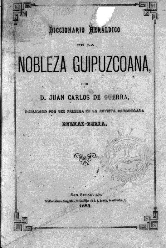 En el prólogo de su imprescindible obra Estudios de Heráldica Vasca (Librería de J. Baroja e Hijos, San Sebastián, 1910), Guerra escribe: