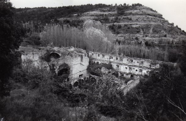 Vieja fotografía de las ruinas del olvidado Convento franciscano de San Bernardino, de Poza de la Sal, descrito por Navagero en 1528. Fue fundado, probablemente en 1451, por Fray Lope de Salazar, bajo los auspicios materiales de Juan Rodríguez de Rojas y Elvira Manrique de Rojas, VI Señores de Poza. Su aislamiento, notable capacidad y amplios campos lo hicieron especialmente propicio para el retiro, convirtiéndose en casa de recolección, primero en la provincia franciscana de Burgos y a partir de 1602 en la de Cantabria. Hospital militar durante la francesada, los monjes sufrieron la exclaustración decretada por el rey José en 1809. Regresaron a lo que quedaba del convento en 1814, pero a partir de 1835 se les aplicaron los lamentables decretos desamortizadores y las exclaustraciones dictados por los liberales. En las relaciones de 1836 el convento figuraba ya como extinguido, siendo objeto de pública subasta en 1844.