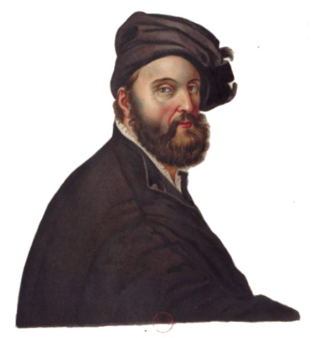 Andrea Navagero. Detalle del famoso cuadro de Rafael Sanzio Retrato de Andrea de Navagero y Agostino Beazzano, 1516 (Galeria Doria Pamphili, Roma). Existe una copia del s. XVII en el Museo del Prado.