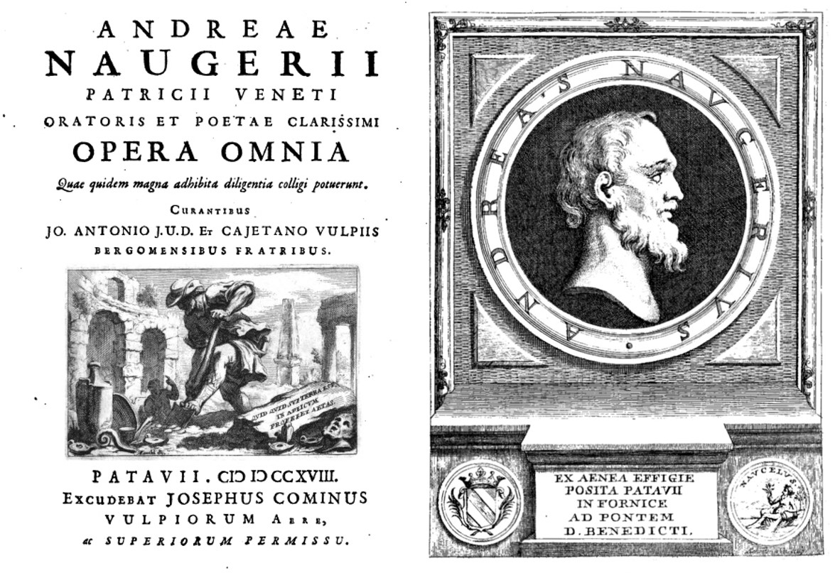 En 1718 los hermanos Cayetano y Joanne Antonio Volpi editaron la Opera Omnia de Andreas Naugerius o Andreae Naugerii o Andreae Naugerio (por estos nombres latinizados le citan) en Padua. En 1754 la Tipografía Remondianiana de Venecia publicó una segunda edición de aquella. En las dos aparecen un estudio biográfico y crítico redactado por Joanne Antonio Volpi sobre Navagero y su tiempo. Los párrafos del texto de El Viaje están numerados.