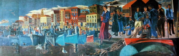 Fragmento del lateral derecho del mural Bermeo (1933), de José María Ucelay. Batzoki del PNV, Bermeo. La mujer que aparece en el centro es Inés Achirica, su esposa.