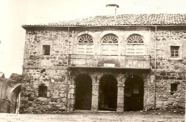 Vieja fotografía de la Casa del Ayuntamiento de Poza de la Sal, desde cuyo balcón el P. Enrique Herrera se dirigió el 26 de diciembre de 1915 a los vecinos.