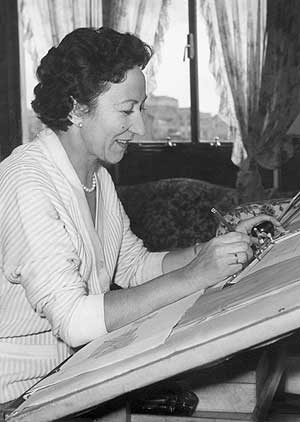 Matilde Ucelay Maórtua (1912-2008) trabajando en el tablero de su estudio el 1 de enero de 1950 (Foto: EFE)