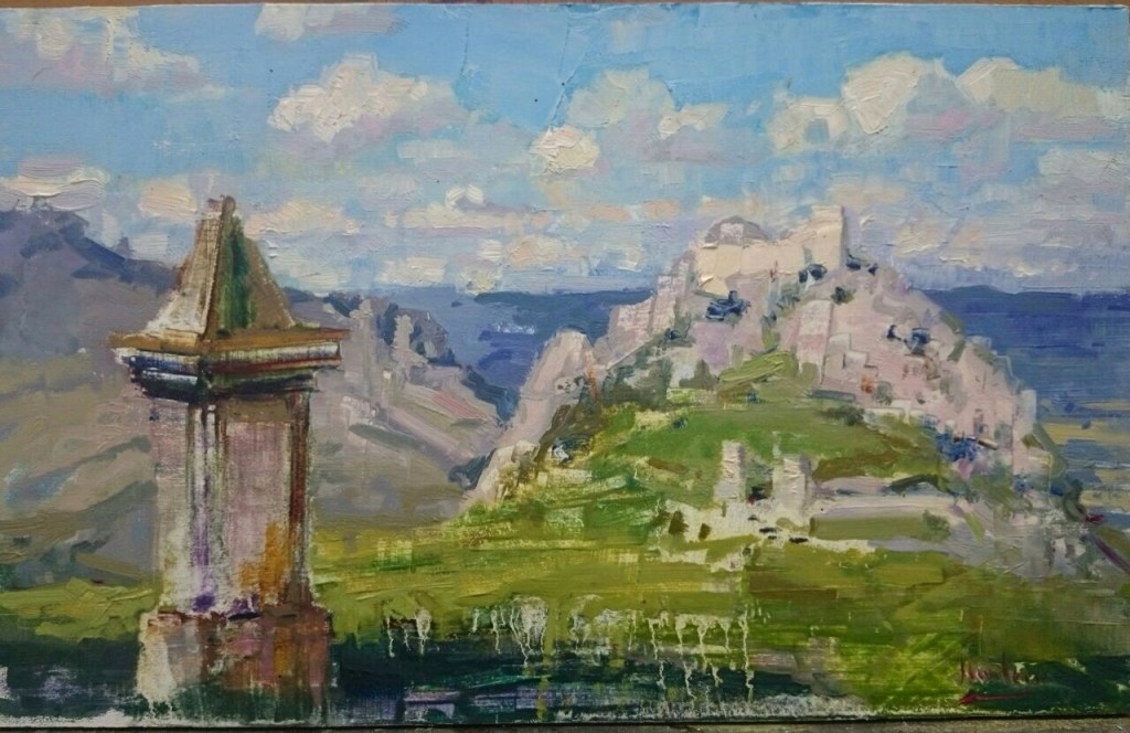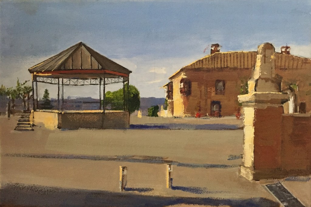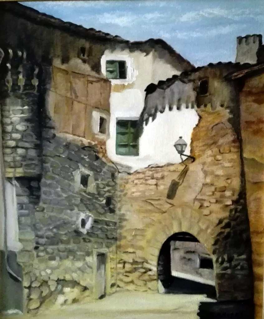 El segundo es el malagueño Antonio Cantero, artista de admirable trayectoria personal, con un extensísimo registro de exposiciones y certámenes por toda España. Al pincel maestro de Cantero debemos cuatro de los cuadros que ilustran esta entrada: la Puerta del Peso; el castillo de los Rojas desde el Picón de Santa Engracia; el lienzo de gran tamaño con la panorámica del castillo; y el caserío de la villa, contemplado desde su lado norte.