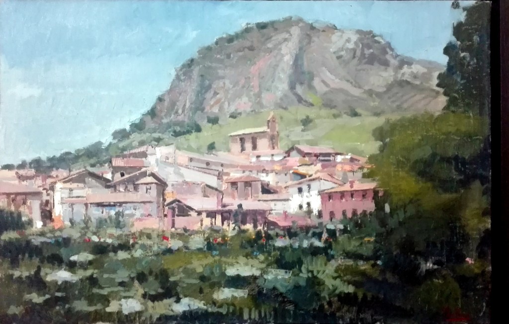 Tampoco los pintores contemporáneos, más o menos consagrados, han prestado particular atención a nuestro pueblo y sus paisajes, tan singulares y atractivos. La excepción estaría representada por dos burgaleses –Marceliano Santa María y Fortunato Julián-, a cuya obra pozana ya he dedicado sendas entradas en este blog. A ellos habría que sumar, al menos, a otros tres artistas cuya pintura de Poza se ha señalado en algún momento y que, por mi parte, están aún pendientes de exploración: el pancorbino Delfín Gómez Grisaleña, el burgalés Román García Rodrigo y el paisajista guipuzcoano Julio Galarta Bengoa.
