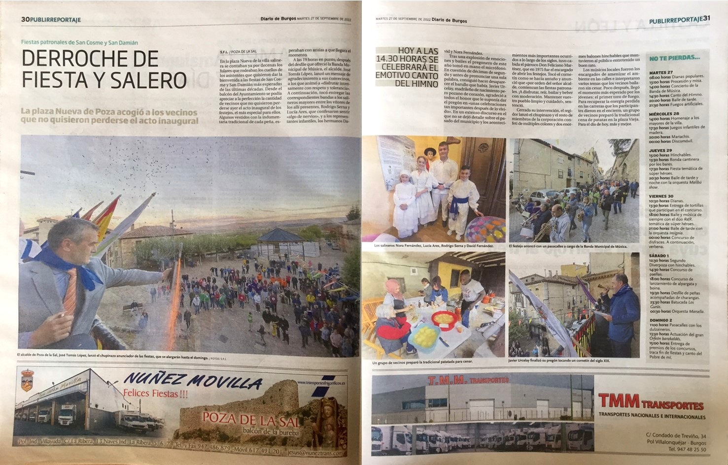 Desde el lunes 26 de septiembre y a lo largo de toda la semana pasada, se han celebrado en Poza de la Sal (Burgos) las Fiestas Patronales de San Cosme y San Damián. Días de alegría y reencuentro para los pozanos, en este 2022 han tenido un significado muy especial para nuestra familia Urcelay, tan vinculada a este pueblo de La Bureba burgalesa: mi querido hermano Javier ha tenido el privilegio de pronunciar el tradicional pregón con el que se inician las Fiestas.
