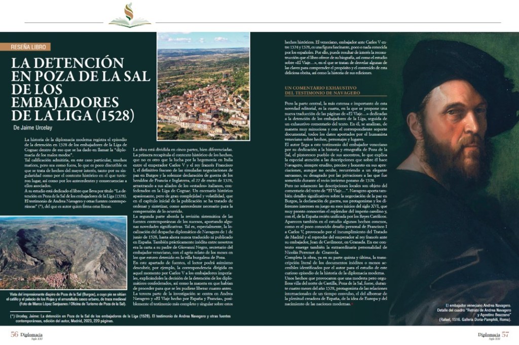 Agradezco a la revista Diplomacia Siglo XXI, órgano de comunicación de la Academia de la Diplomacia, la inclusión en su último número (170), de mayo de 2024, de una amplia y bien ilustrada reseña de mi libro «La detención en Poza de la Sal de los embajadores de la Liga (1528)».