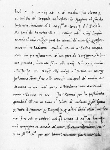 “interesa por la acertada visión de algunas costumbres, por la dosificada inclusión de lo anecdótico, e incluso por certeras apreciaciones sociales y políticas que se le deslizan en unos escritos evidentemente destinados a detallar a Ramusio los ríos, puentes y plantas del camino, así como las distancias, preocupación principal y casi exagerada a lo largo de todo el diario”10.