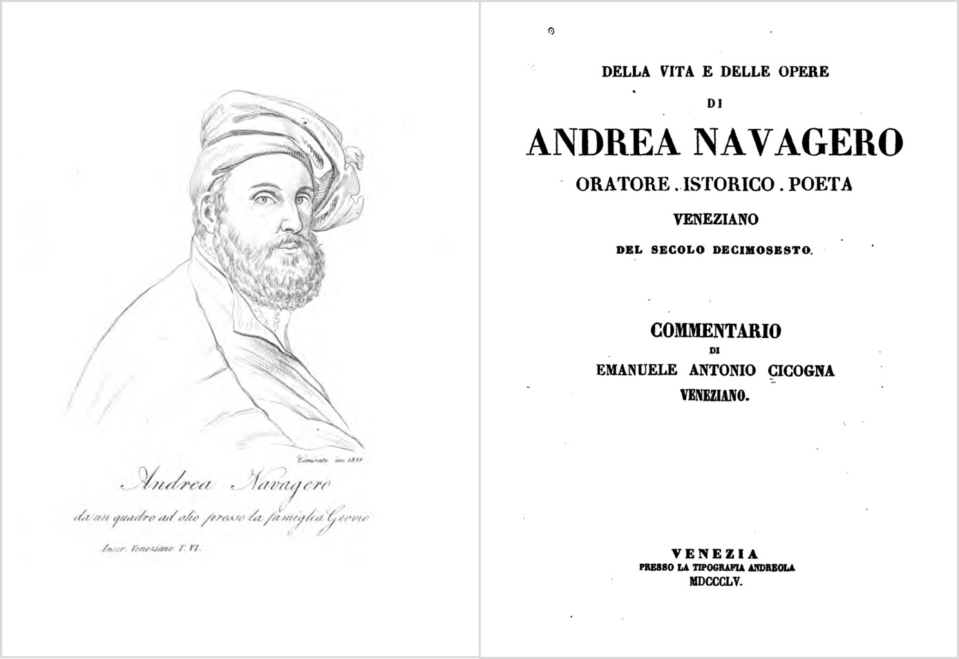 - CICOGNA, E. A.: Della vita e delle opere di Andrea Navagero, oratore, istorico, poeta veneziano del secololdecimosesto, Tipografia Andreola, Venecia, 1855. ↩︎