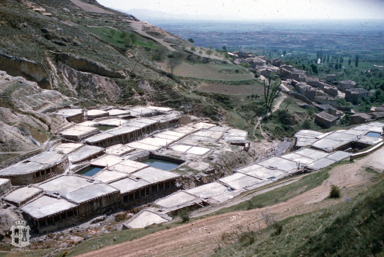 El camino que cruza la foto es el de La Magdalena y las granjas que aparecen creo que son, tomando como referencia el imprescindible plano de Eduardo Sáiz Alonso («Las salinas de Poza de la Sal», pág. 25) y yendo de abajo a arriba de la imagen, los de Rusalado, en su parte más occidental, El Barral, El Borco y, sin seguridad, Las Huérfanas (arriba, hacia la derecha) y Medianas (arriba a la izquierda).