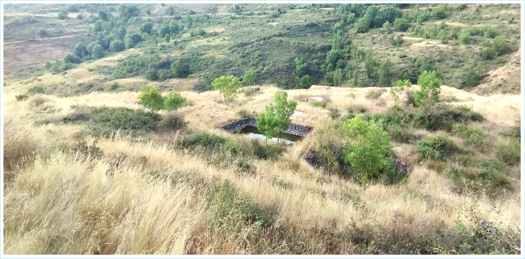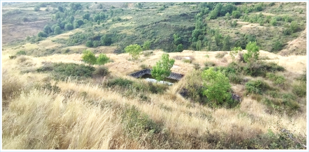 En esta foto puede verse el mismo lugar tal y como se encuentra en la actualidad; la foto es de 17/08/2025. La naturaleza, implacable, ha borrado el granjerío abandonado, aunque aún pueden reconocerse los pozos.